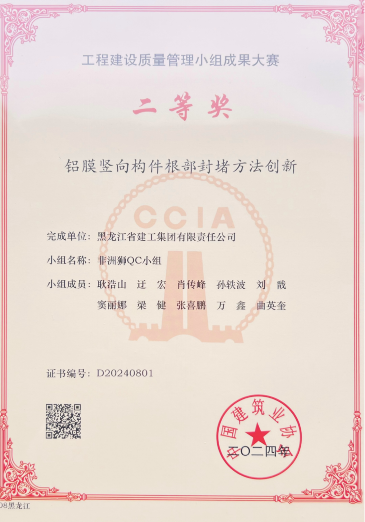工程建設(shè)質(zhì)量管理小組成果大賽二等獎(jiǎng)