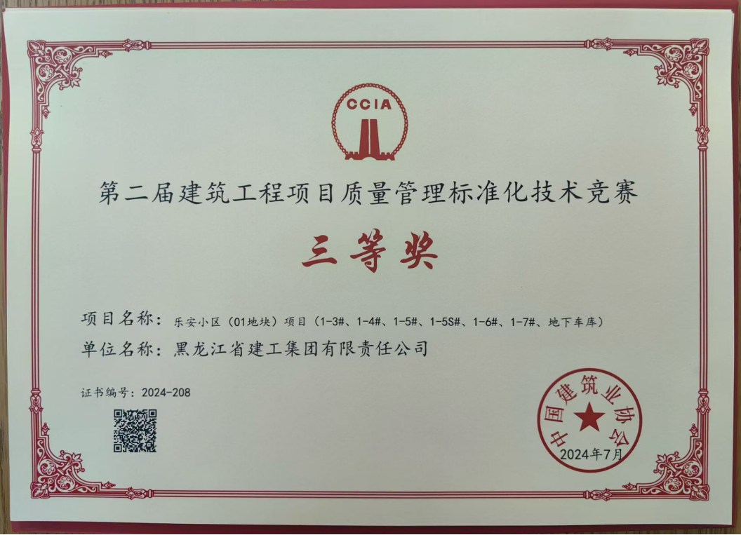 第二屆建筑工程項(xiàng)目質(zhì)量管理標(biāo)準(zhǔn)化技術(shù)競(jìng)賽三等獎(jiǎng)